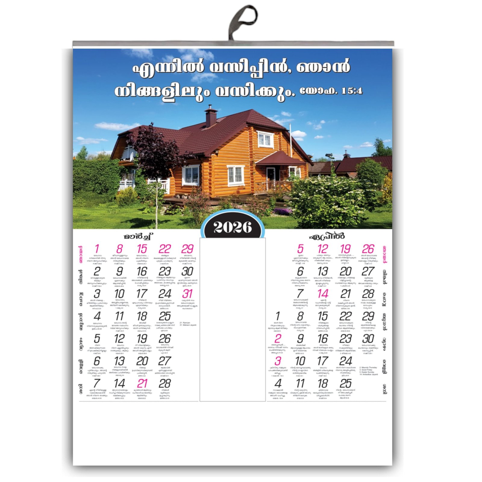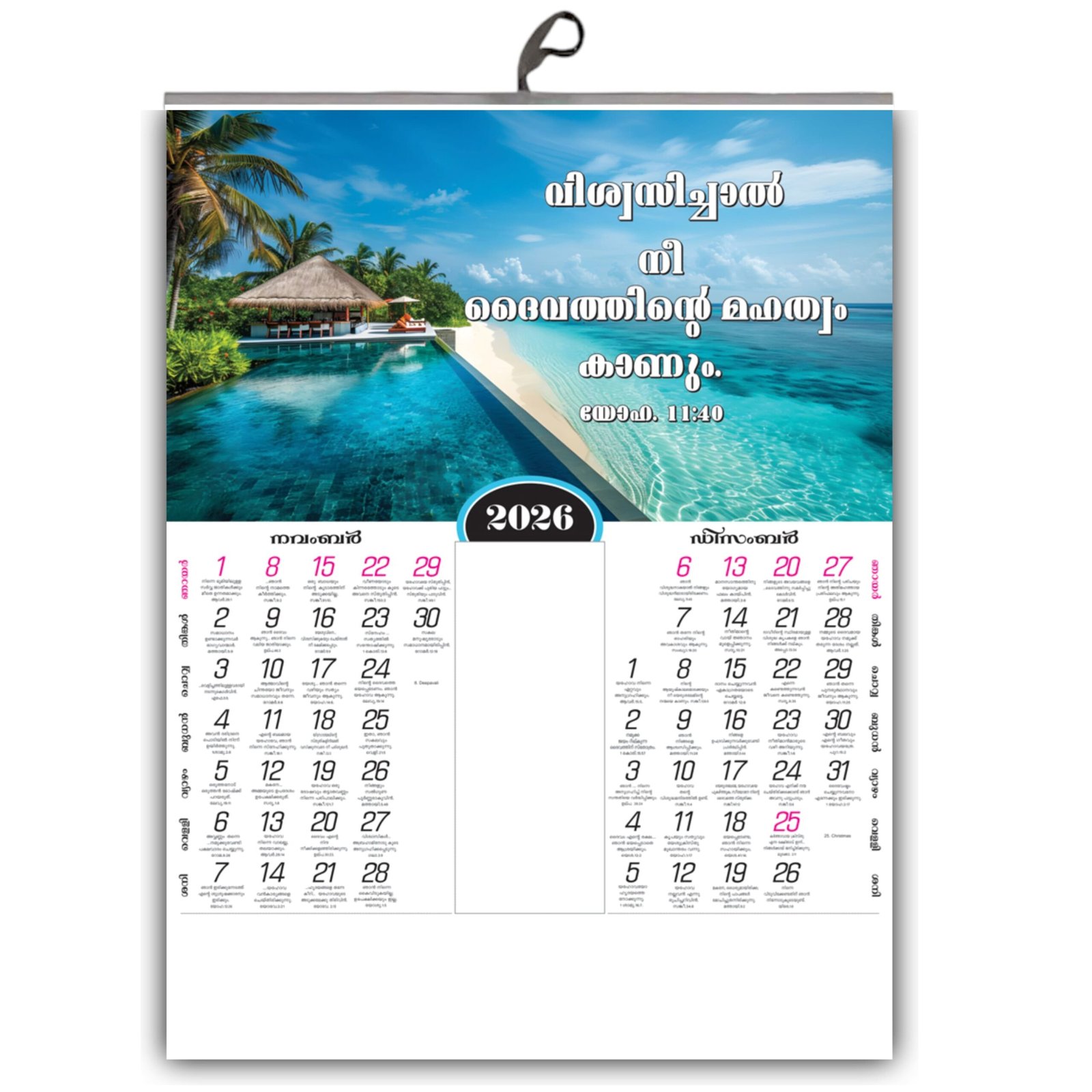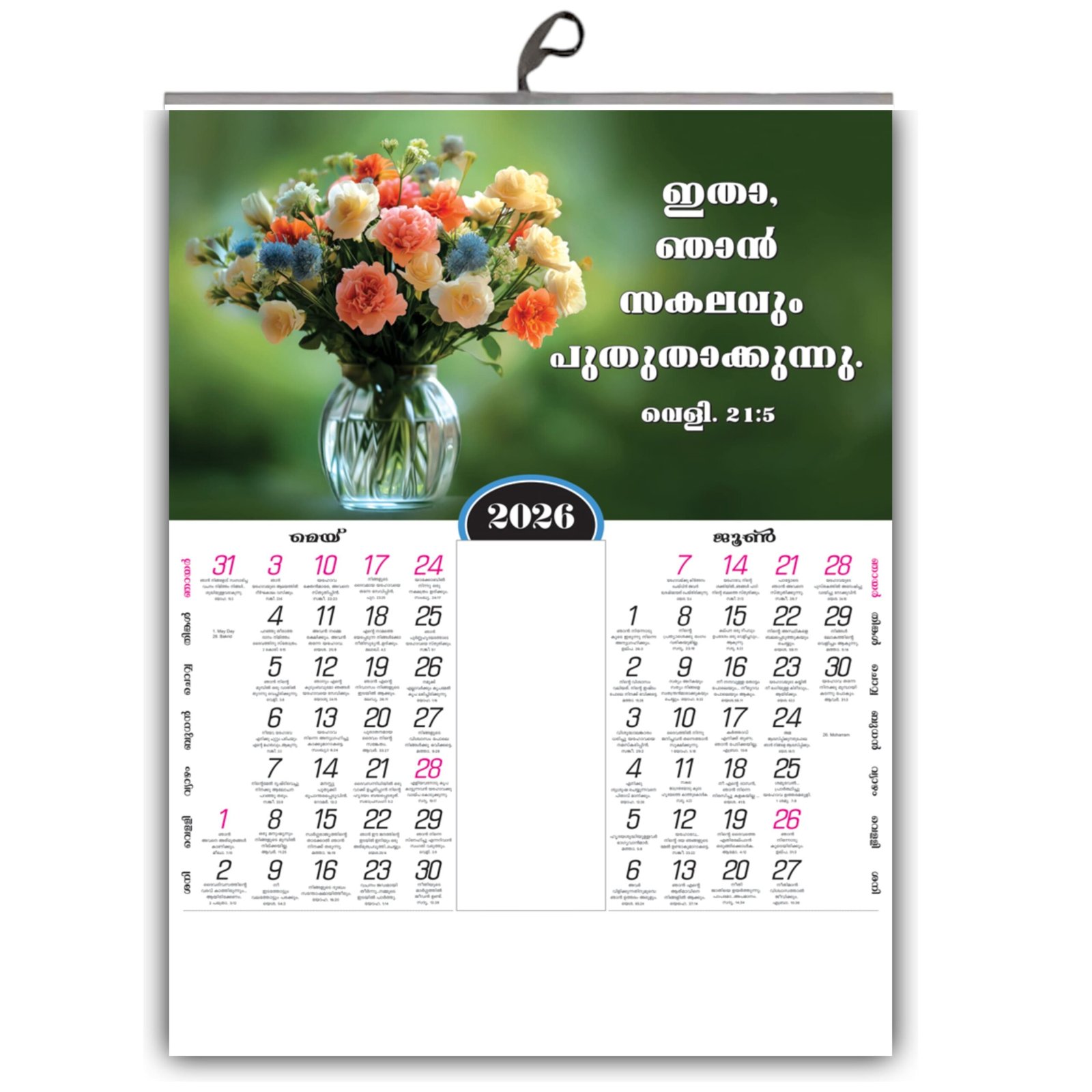 Bring the divine Word of God (ദൈവവചനം) into your home in the beautiful language of Malayalam. Our 2026 Wall Calendar is thoughtfully created for Malayali Christian families to find daily inspiration and encouragement in the scriptures.