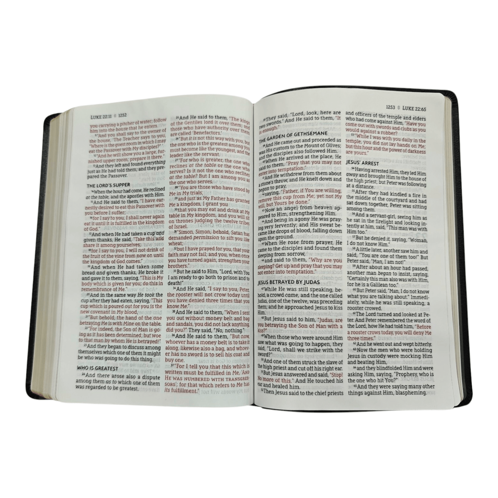 - Black Letter Text: The words of Christ are printed in the same ink as the rest of the text (black letter), providing a clean, uninterrupted reading experience preferred by many students of the Word.