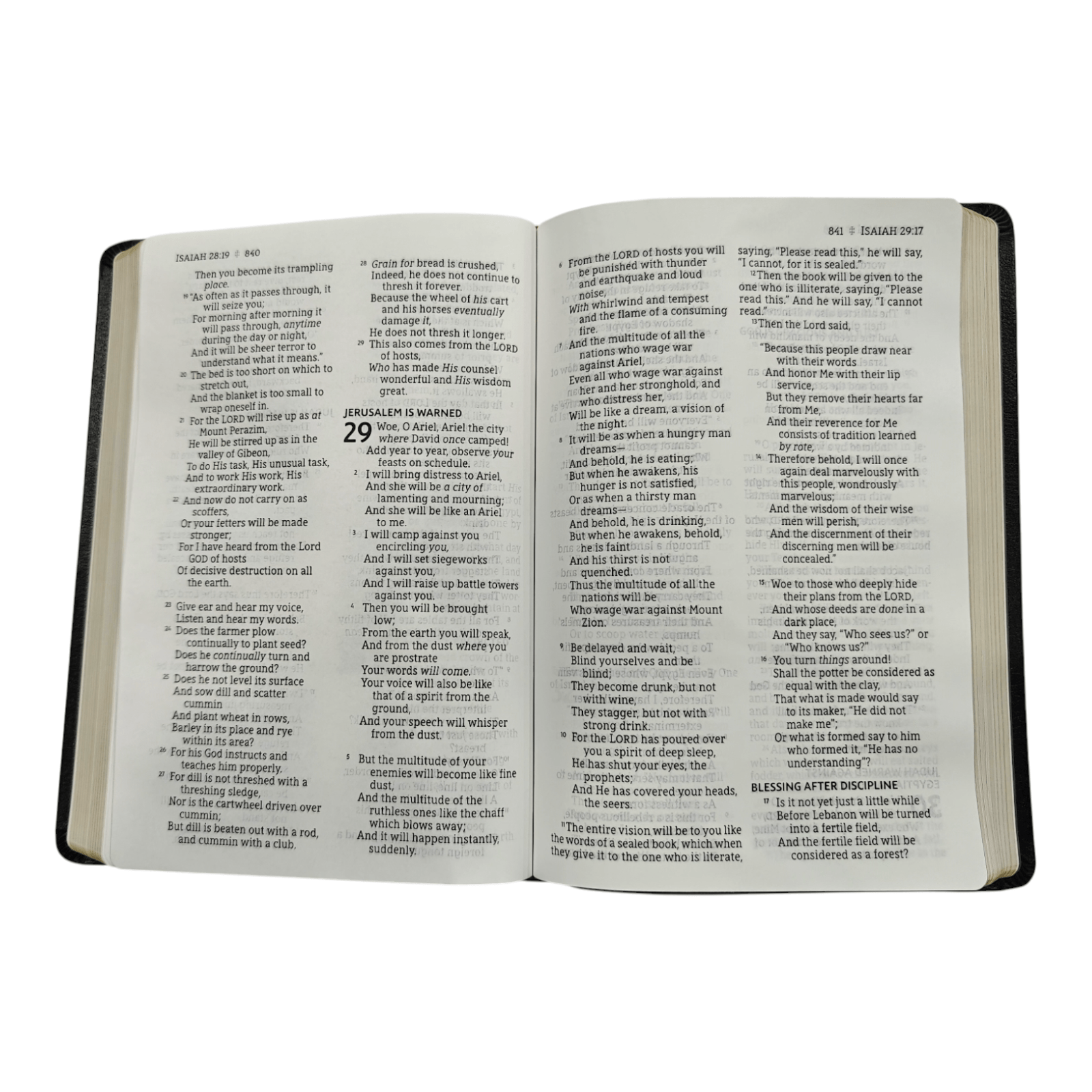 - Minimal Footprints: A clean interior design focuses on the biblical text, with minimal study notes for a distraction-free reading experience.