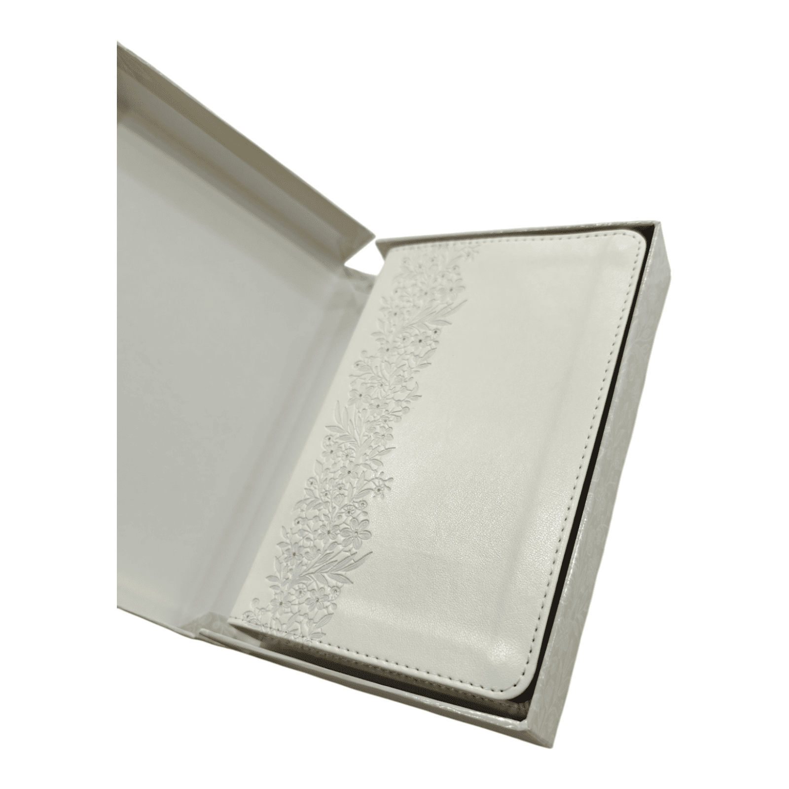 - Elegant Design: A beautiful white binding, often with satin ribbon markers, gilded page edges, and decorative covers to complement a wedding aesthetic.