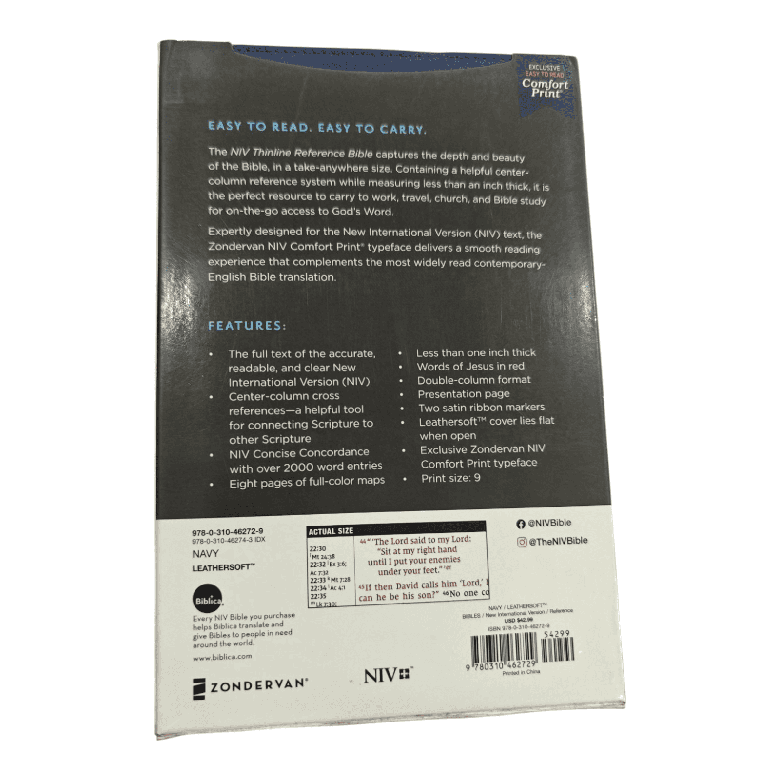 Why choose between deep study tools and a Bible that’s easy to carry? The NIV Thinline Reference Bible, Compact gives you both, packing a robust center-column reference system into a slim, go-anywhere format. It’s the perfect companion for the student, traveler, or anyone who wants to have the power of a reference Bible with them at all times.
